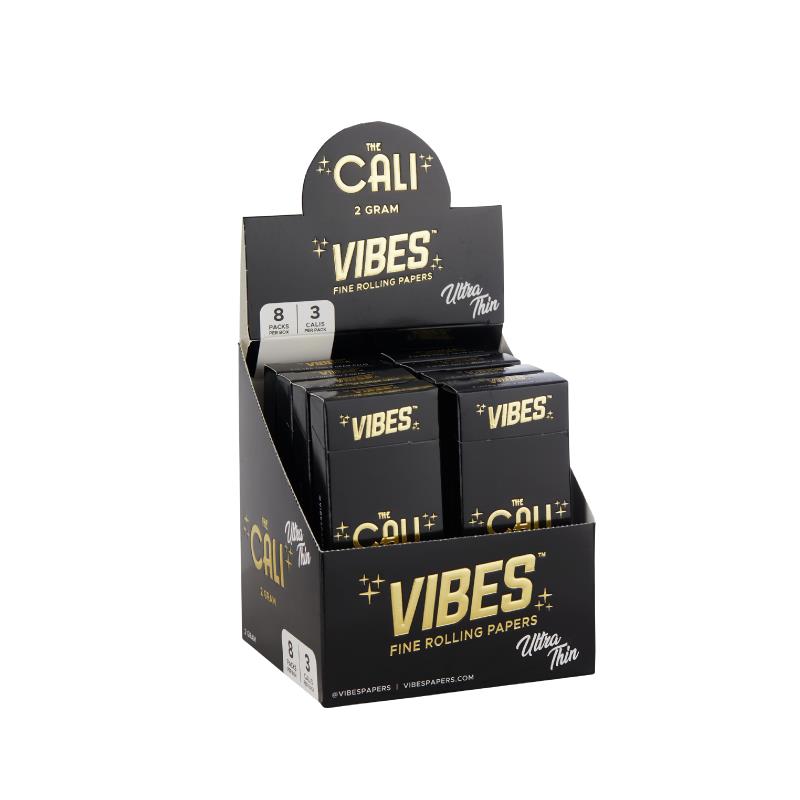 La caja Cali by VIBES™ de 2 gramos contiene 8 paquetes con 3 pre-rolls por paquete, para un total de 24 conos Vibes Cali de 2 gramos. Es perfecto para cualquiera que desee una experiencia de fumar más amplia y cómoda.